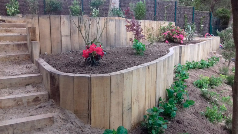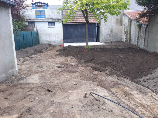 Défrichage du jardin, pose de clôtures, réalisation de pavage, plantations, arrosage automatique et gazon